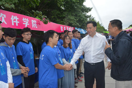 校领导对新生关怀备至,校长李元元、党委书记杨振斌带领学校各部门相关领导亲临迎新现场,亲切的问候了迎新工作志愿者们,充分表现了我校领导对新生的关注和爱护。