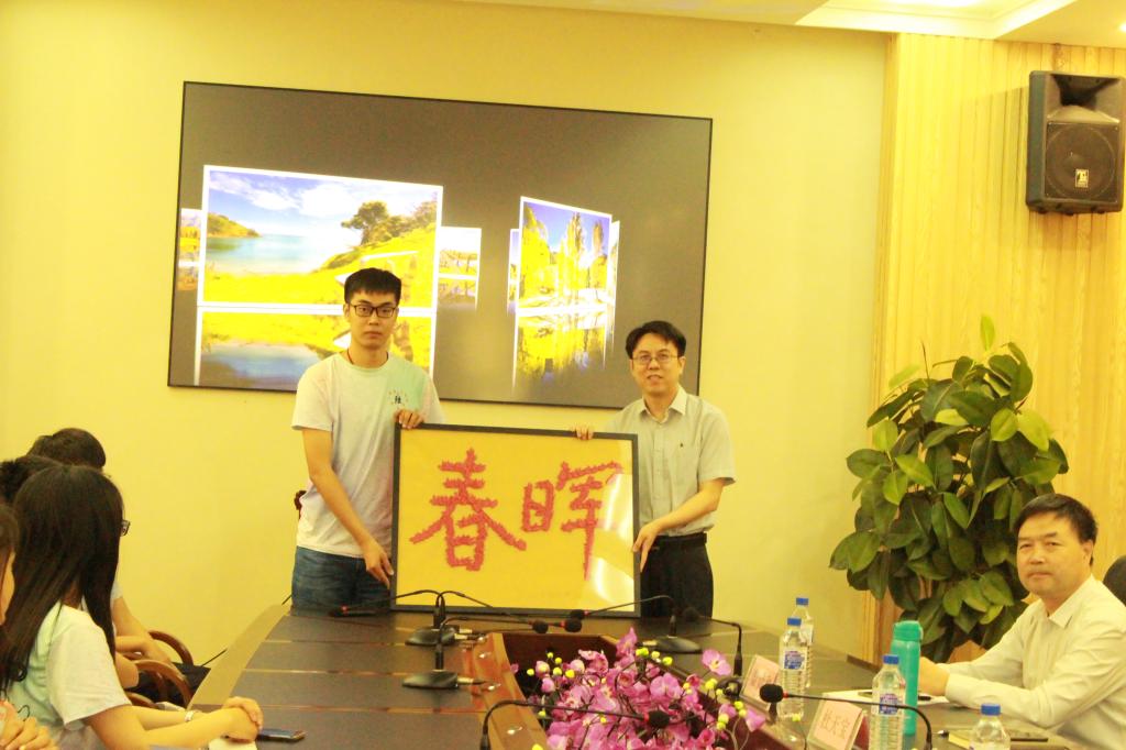在活动的最后, 551506班班长姜钧译代表班级向学院赠送礼物,礼物由团支部全体同学参与制作的520只纸鹤构成,共同拼成“春晖”字画,“春晖”二字形容母爱,取自古诗“谁言寸草心,报得三春晖”,在这里用来表达团支部同学对于母校的爱,这件礼物凝聚着毕业生同学拳拳爱校之情,最后,全体师生共同合影留念,活动在温馨的氛围中走向尾声。