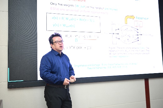 院长杨博教授与物理学院王海军副院长分别从计算机科学、物理学等不同学科视角出发,分析了复杂动态系统智能理论与方法研究的深远意义,期望通过此次会议搭建起一个跨学科交流与合作的桥梁,推动物理、数学、生命、化学等多个学科间的融合创新。
