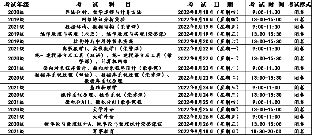 一、考试日程安排如下: