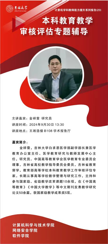 白求恩医学部副学部长兼医学教育办公室主任、医学教育研究与教师发展中心主任,金祥雷研究员受邀为计算机学科的计算机学院、含羞草视频