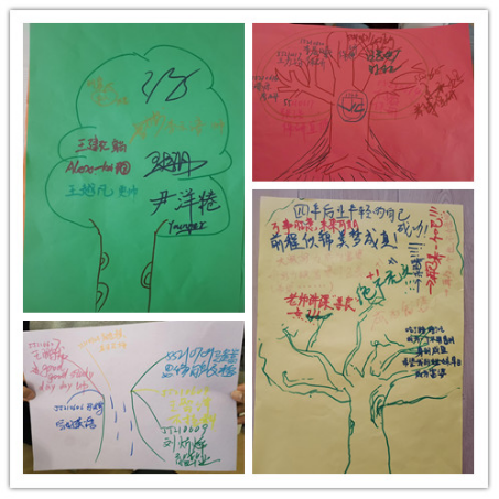 热身游戏后,同学们随机分组,在依次进行简短的自我介绍后,开展“快乐传递”、“信心启迪”、“信任之旅”等小游戏。“快乐传递”活动让同学们将自己的想法和祝愿写在卡片上,鼓励同学们主动交际,不惧未来;“信心启迪”活动让同学们写下自己的三个小目标,为今后的大学生活明确前进方向;“信任之旅”活动,所有同学分批次体验“盲人”感觉,在没有语言沟通的情况下由“引路人”带领到达终点,增强同学间相互信任。以上活动使同学们收获了同学情谊,增强了集体意识,挖掘了自身潜能,调整了自己心态,明晰了努力方向,增进了彼此友谊。随着活动接近尾声,在《相亲相爱的一家人》的背景音乐声中,同学们拿起手中的画笔,共同绘制了一幅《团体树》,写下新学期的美好祝愿。至此,含羞草视频