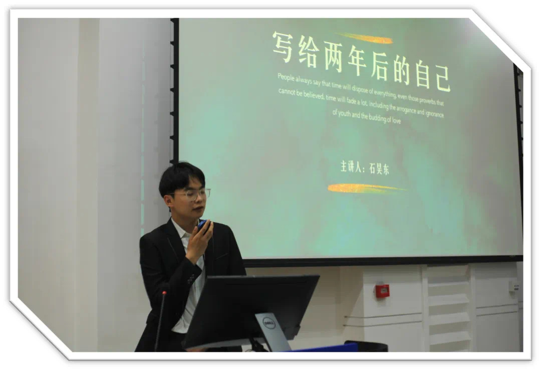68名同学聚集在敬信教学楼十一阶梯教室,进行了一场别具一格的“写给两年后的自己一封信”活动,旨在鼓励同学们规划未来,激发个人成长潜力。在活动现场,主持人首先通过宣传和讲解活动背景和意义,吸引了众多同学们积极参与。接下来,同学们在轻松愉悦的氛围中开始给两年后的自己写信。大家认真思考、积极构思,将自己的思考和感悟融入到字里行间。有的同学写下了对未来的展望和计划,表达了对自己的期许和信心;有的同学则写下了对过去的回忆和感悟,表达了对自己的认识和成长。在信件写完后,同学们纷纷将信件放入特制的“时光胶囊”中,由秘书部精心保管。
