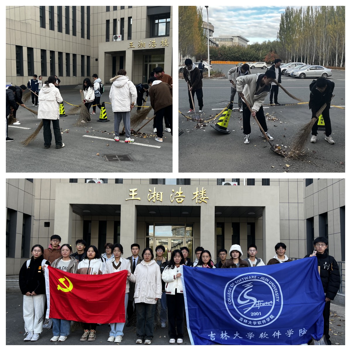 在活动过程中,同学们在工作人员的带领下,以王湘浩楼为中心,对周围的道路和停车场进行了认真细致的清理,将散落在地上的树叶和随地丢弃的垃圾打扫干净,不留卫生死角,使得校园环境更加整洁、美化。同学们积极主动地参与到劳动中去,展现出当代大学生的蓬勃朝气和劳动热情,也更加坚定了劳动创造美好生活的理想信念。同学们纷纷表示,通过此次活动增强了自身的集体荣誉感和责任感,感悟到良好的校园环境需要大家用心去维护,也深刻领悟了劳动精神的内涵。
