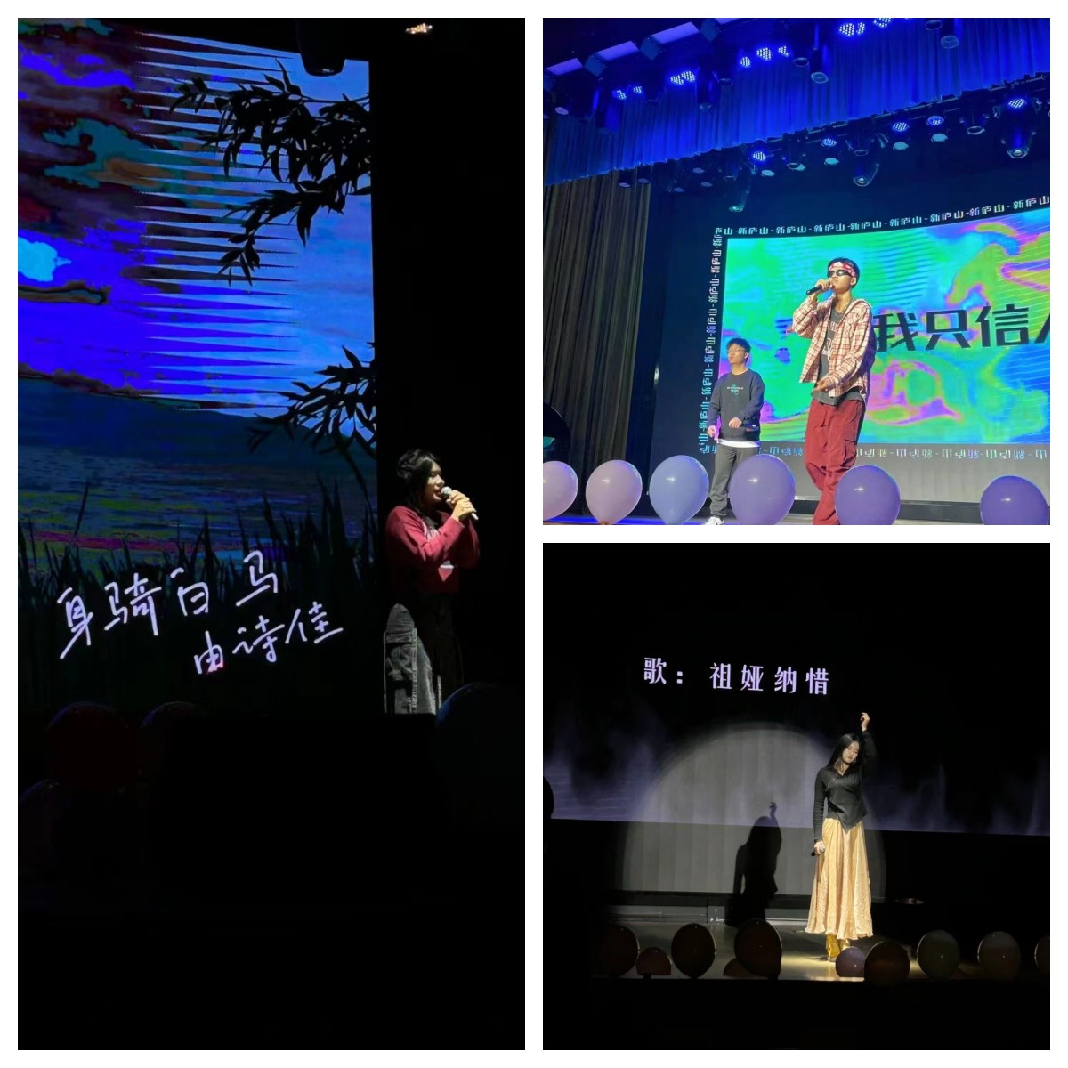 在串场环节,校园歌手大赛亚军任青宇和十强选手盛馨亿分别演唱了《阿里山的姑娘》和《倒数》,向大家诠释了民族之美和对生命的热情,YC舞团带来青春洋溢的舞蹈,瞬间点燃现场的气氛。22级本科生陈睿毅演奏了钢琴曲《Call your name》,悠扬的旋律打动人心,十八吉他社赵晨淞弹奏的吉他曲《Smoke signals》渲染了忧郁伤感的氛围,为全场观众献上了一场视听盛宴。最后,院团委副书记于歆照、院学生会主席石昊东、评委任青宇、盛馨亿为本次大赛的获奖选手颁奖并合影留念,丁奕硕凭借424票的人气获得“最佳人气选手”称号。