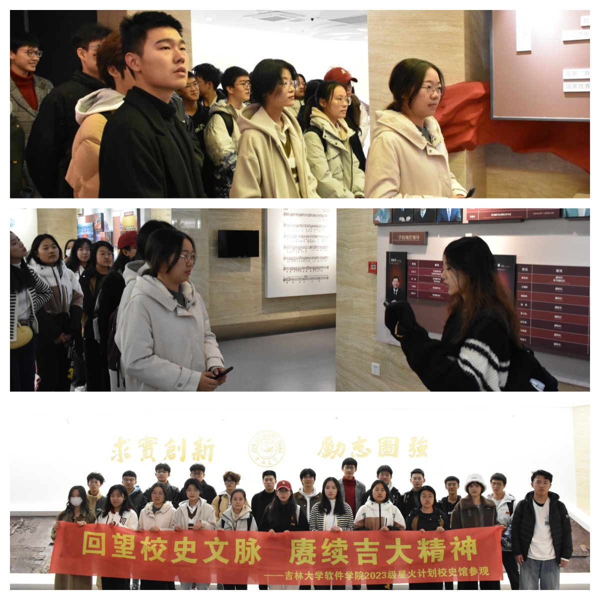 自组建以来,肩负国家高等教育改革的重任,汇聚了一批来自国内外的学术大师和教育精英,为国家建设、社会发展和人类进步培养了大批栋梁之才,孕育了丰富的学术思想精华,赢得了良好的学术声誉和社会声望。七十七载倍道兼程、沐雨经霜,是吉大人不忘初心、勇担重任的执着坚守。通过一幅幅展现校史变迁的老照片、一个个承载建校记忆的老物件、一块块记录发展历程的精美展板,同学们深切地感受到,学校的发展既是一部自强不息的奋斗史,也是一部与时俱进的开拓史。