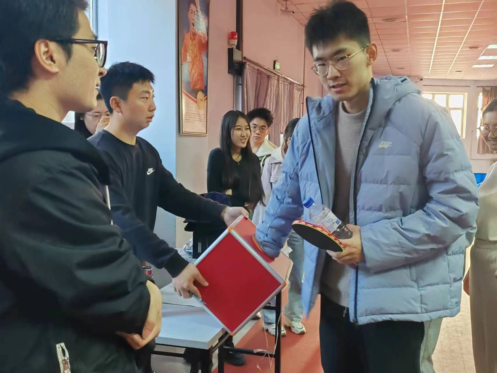 活动前夕根据报名情况,将参赛选手分为了新手组和老手组,旨在鼓励更多热爱乒乓球运动的同学能够更好地参与到其中。新手组分为三组,组内的两两同学可以进行友谊赛。老手组在现场由选手抽签来决定对手。参赛选手们拼尽全力,发挥出了最好的竞技水平,赛场氛围紧张刺激,不时响起喝彩声和鼓掌声。