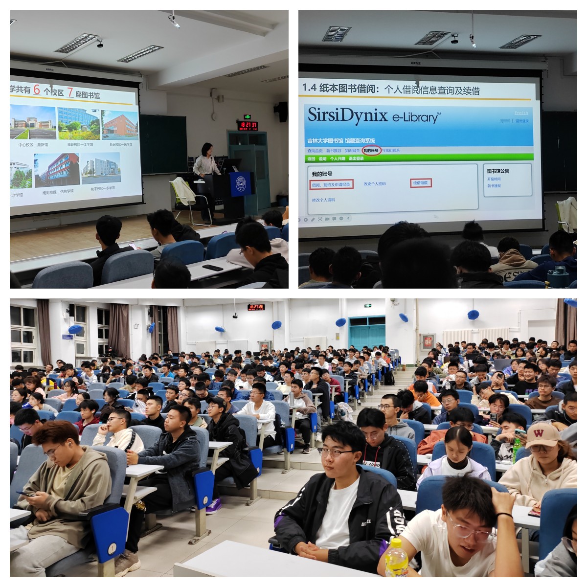 图书馆的概况,包括图书馆的分布、馆藏资源、进入方式、开馆时间和官方网址等。接着,王老师详细地讲解了利用图书馆资源的基本方法,帮助同学们熟悉借阅纸本图书、查找数字资源、阅读畅销电子书的相关操作。随后,王老师向同学们展示了图书馆的特色服务,包括吉大人阅读空间、咖啡吧、研讨间等,并举例说明了图书馆开展的各类活动和举办的主题讲座。王老师还强调了图书馆文明公约,要求同学们要遵守图书馆的规章制度,坚决杜绝不文明行为,共同维护图书馆秩序。最后,针对同学们所关心的座位和研修间预约等问题,王老师逐一进行了解答。新生同学们表现出了极高的学习热情,认真听讲,积极互动,并利用笔记本电脑现场练习检索数字资源。