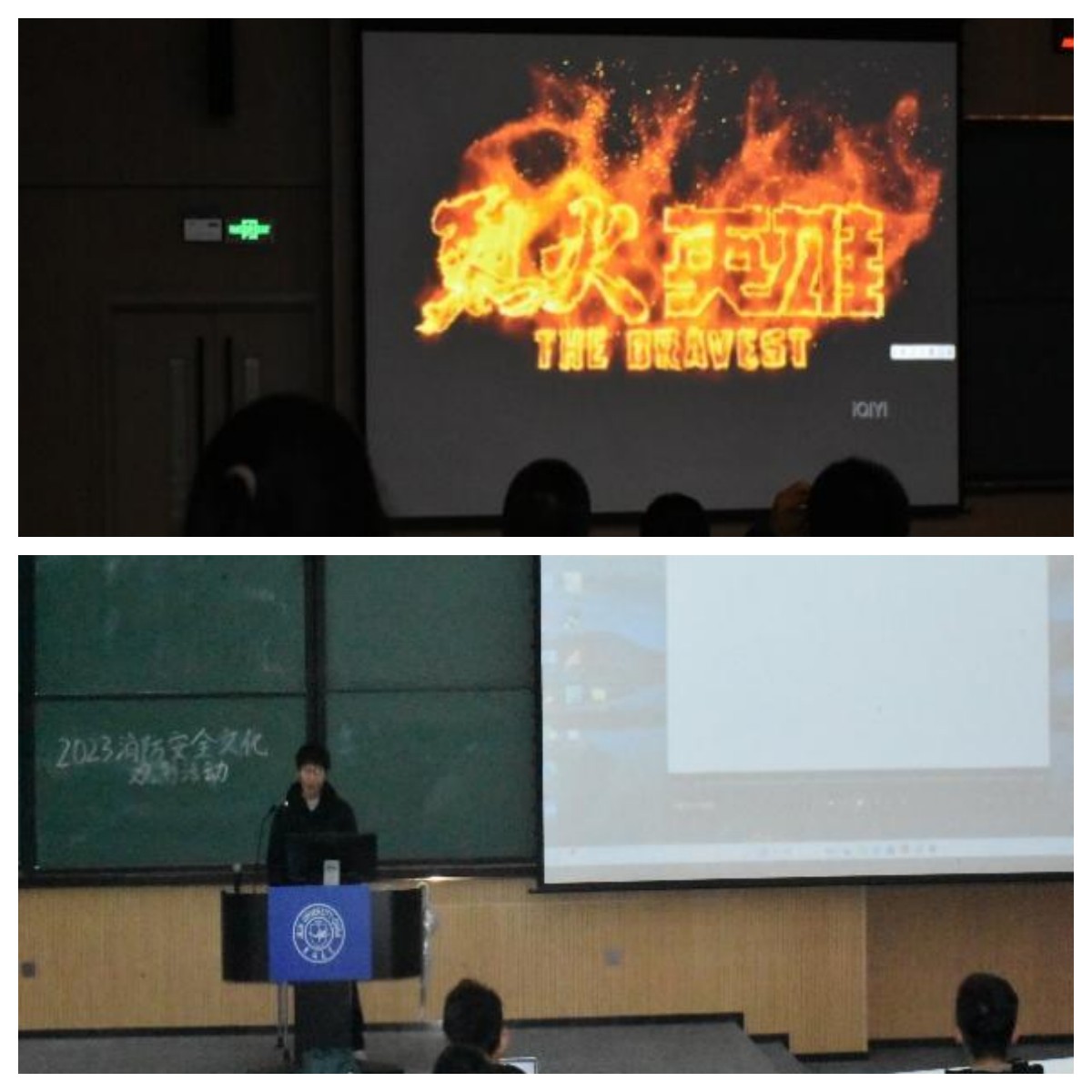 本次活动由生活学习部副部长韩佩鑫担任主持人,首先,同学们共同观看了普及消防安全知识的相关短片,初步了解了校园火灾事故的主要原因和防火注意事项。随后,主持人重点阐述了校园消防安全的重要性,针对消防安全意识薄弱,火场逃生能力差等问题,系统地讲解了如何正确扑救初起火灾、如何查找火灾隐患等消防基础常识,提醒同学们一定要自觉遵守管理规章制度,清醒认识火灾的危险性。接着,同学们集体观看影片《烈火英雄》,电影以“大连7·16油爆火灾”为原型,讲述了沿海油罐区发生火灾,消防队伍上下级团结一致、誓死抵抗,以生命维护国家及人民财产安全的故事。同学们通过电影看到了火灾现场的实景,仿佛能感受到灼人的热浪,同时也从消防员们的倾力救援中体会到新时代和谐、友善的社会面貌。在观影结束后,同学们填写了调查问卷,记录了自己通过此次活动学到的消防知识并提出对于学校在消防安全建设方面的建议,包括多组织消防安全演练、举办消防知识竞赛等,为消防安全工作的推进积极建言献策。