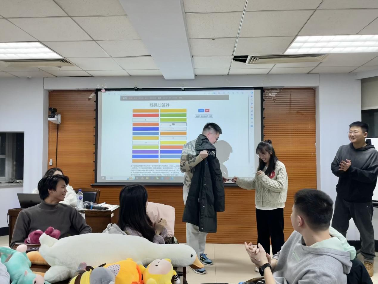 最后,幸运抽奖环节由工作人员随机挑选中奖号码,中奖者将获得“苏格拉底”“柏拉图”等哲学名家的纪念徽章,配对领奖的设计进一步拉近同学间的心理距离,助推同学间的互动交流。
