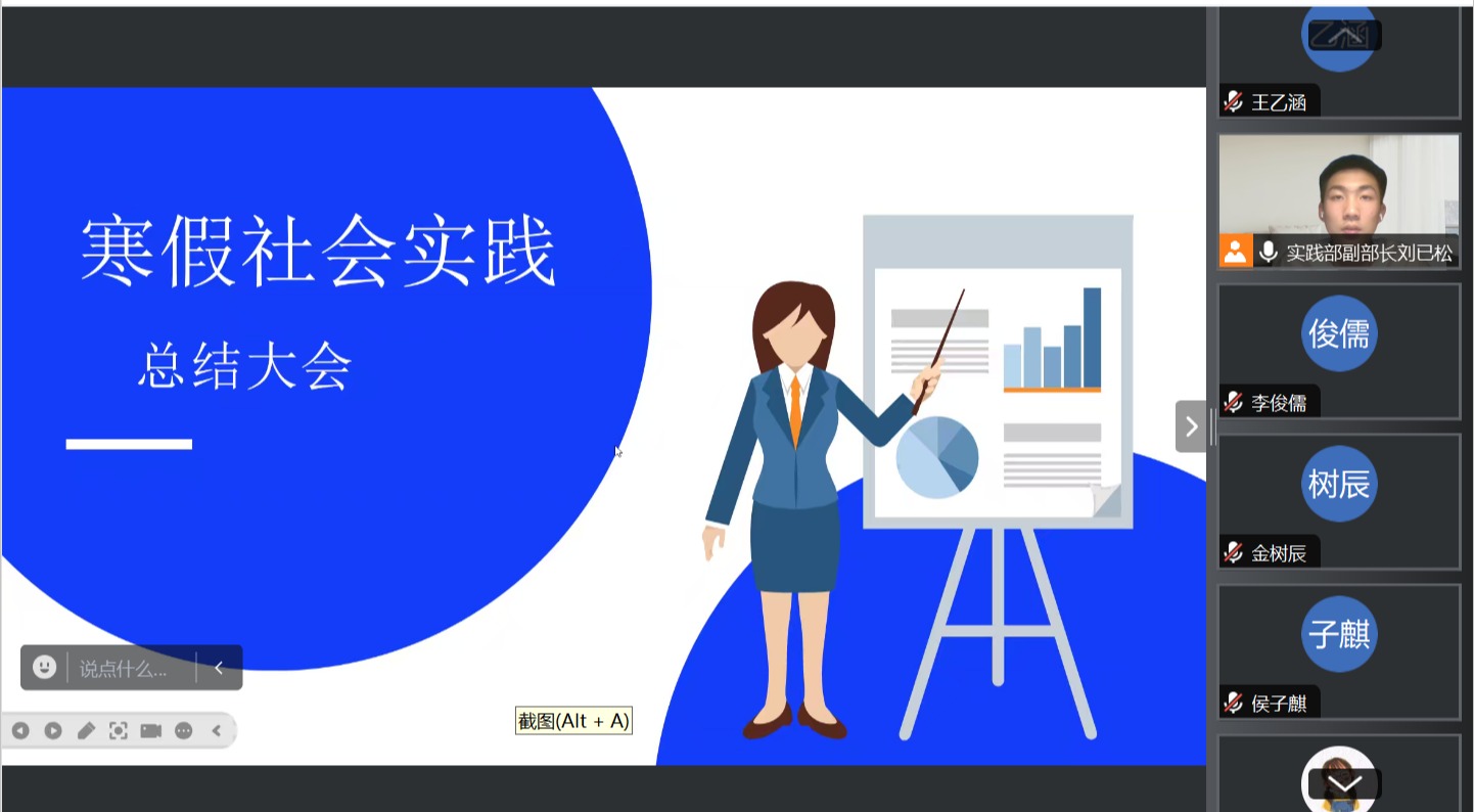 最后,实践部副部长致辞总结,宣布此次寒假实践活动圆满成功。