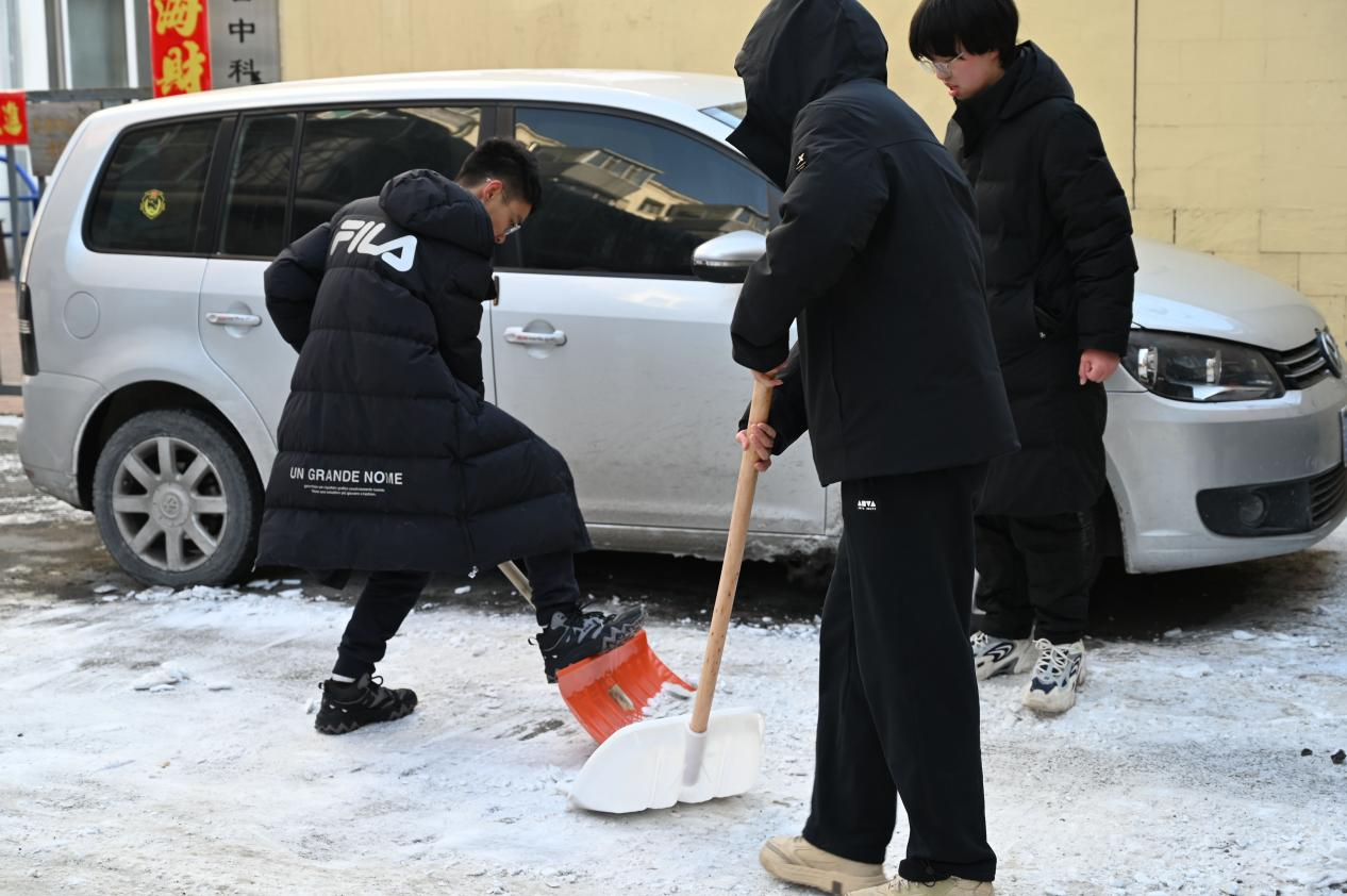 活动当天,志愿者们首先对社区内的主干道、人行道进行了细致的调研,向社区工作人员详细了解积雪的情况和居民的需求,随后志愿者们迅速行动起来,分工合作,有条不紊的开始铲雪除冰作业。在了解到社区内老年人较多后,考虑到居民的出行安全,志愿者们着重对社区内健身设施周围、各单元楼门口、停车场、敬老院周边区域的残留冰雪进行清理,确保居民出行的安全与顺畅。尽管积雪较厚,路面难行,但同学们满怀活力,努力做到“扫过即净,不留余冰”,收获了社区居民及工作人员的广泛认可和赞誉,充分展现了含羞草视频