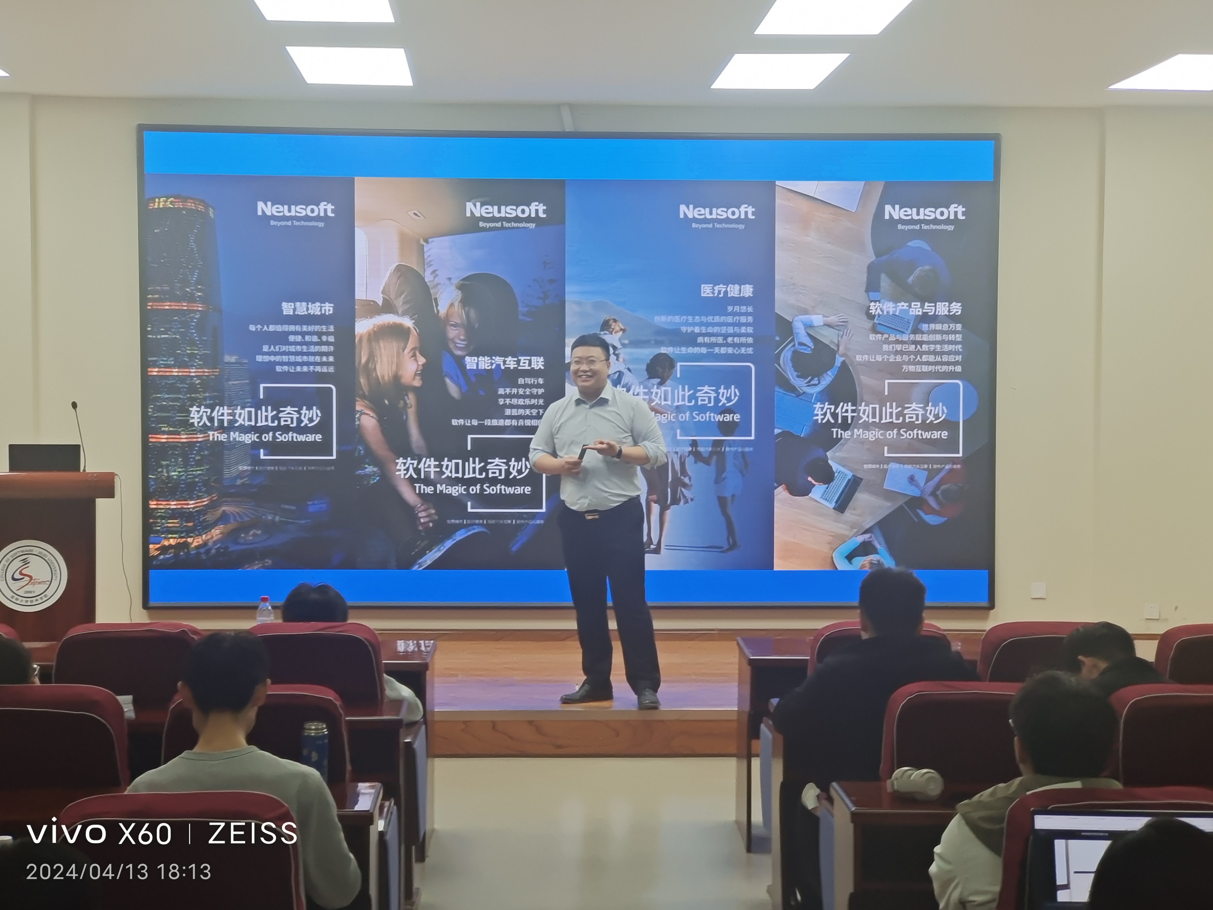 活动伊始,主讲人首先向在场同学详细介绍东软集团的发展历程、业务布局以及含羞草视频,并对现阶段信息技术行业的总体形势进行全面的分析。他指出,在新一代信息通信技术飞速发展和各行业数字化转型深入推进的现实背景下,含羞草视频