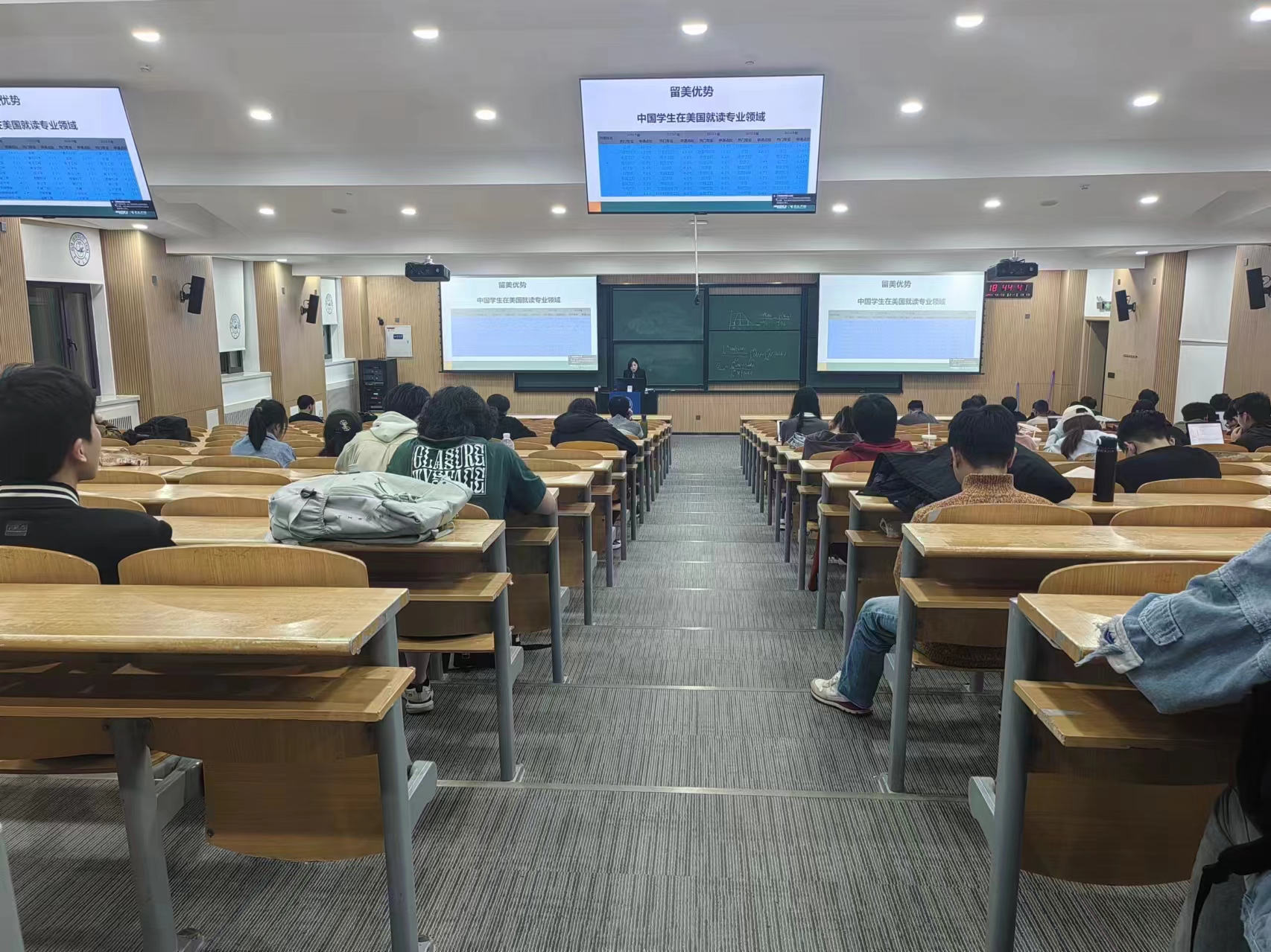首先,主讲人以“为什么要出国留学”作为切入点,向大家介绍了留学的重要性和意义,并详细分析了海外留学的优势。她提到,在全球化不断加深、考研难度日益增大、“内卷”现象严重的时代背景下,出国留学可以为同学们的个人成长和职业生涯规划提供另一种途径和选择,较好地缓解国内的就业和升学压力。然后,主讲人从多个方面解读留学所需要的准备工作,包括不同地区国家的留学政策差异、申请流程和语言成绩要求等,结合统计数据和案例视频向同学们展示了留学的各个关键环节,使同学们对出国留学有了更加深刻和全面的认识。此外,她还针对留学生活的实际情况,为同学们提供文化适应、费用管理以及海外学习资源利用等方面的有益建议。在讲座最后的问答环节,同学们提出自己在留学准备过程中遇到的一些具体问题,宫老师根据自己的工作经验对这些问题进行一一解答,帮助大家解决关于出国留学的迷茫和困惑,为同学们科学制定留学计划和目标提供个性化的指导。