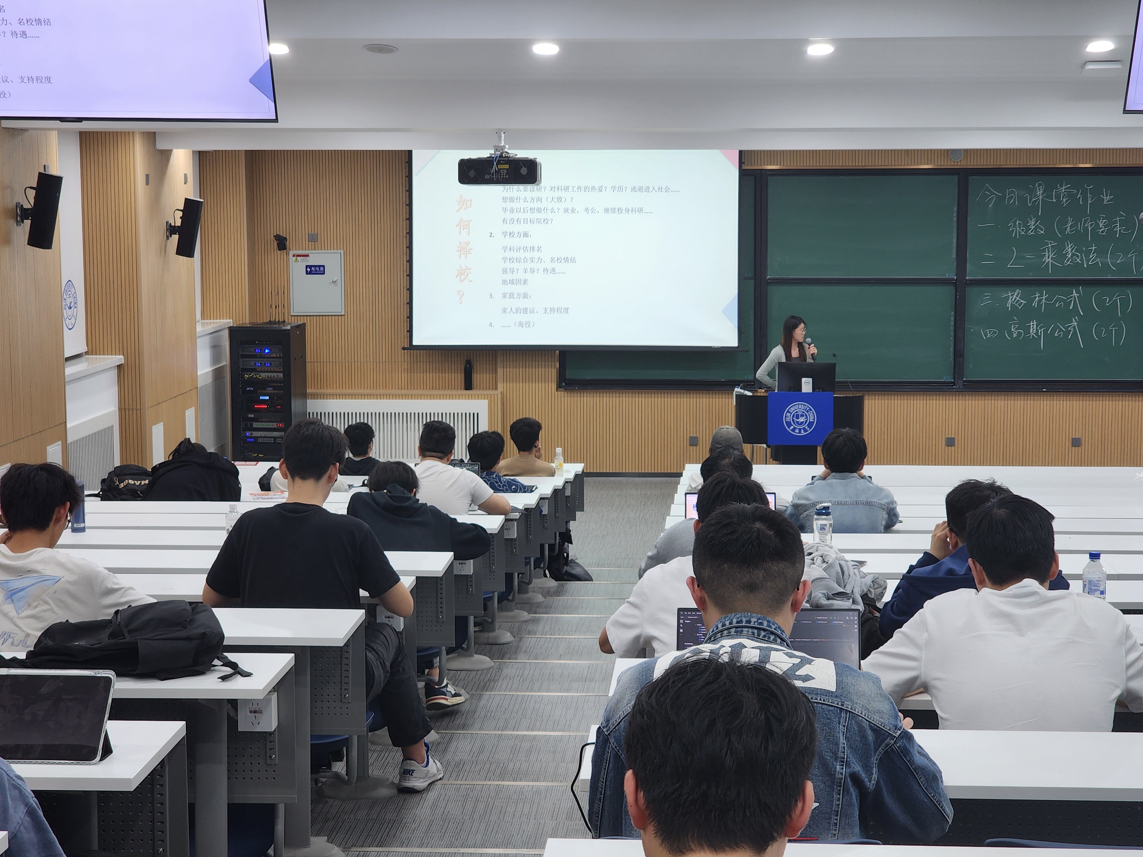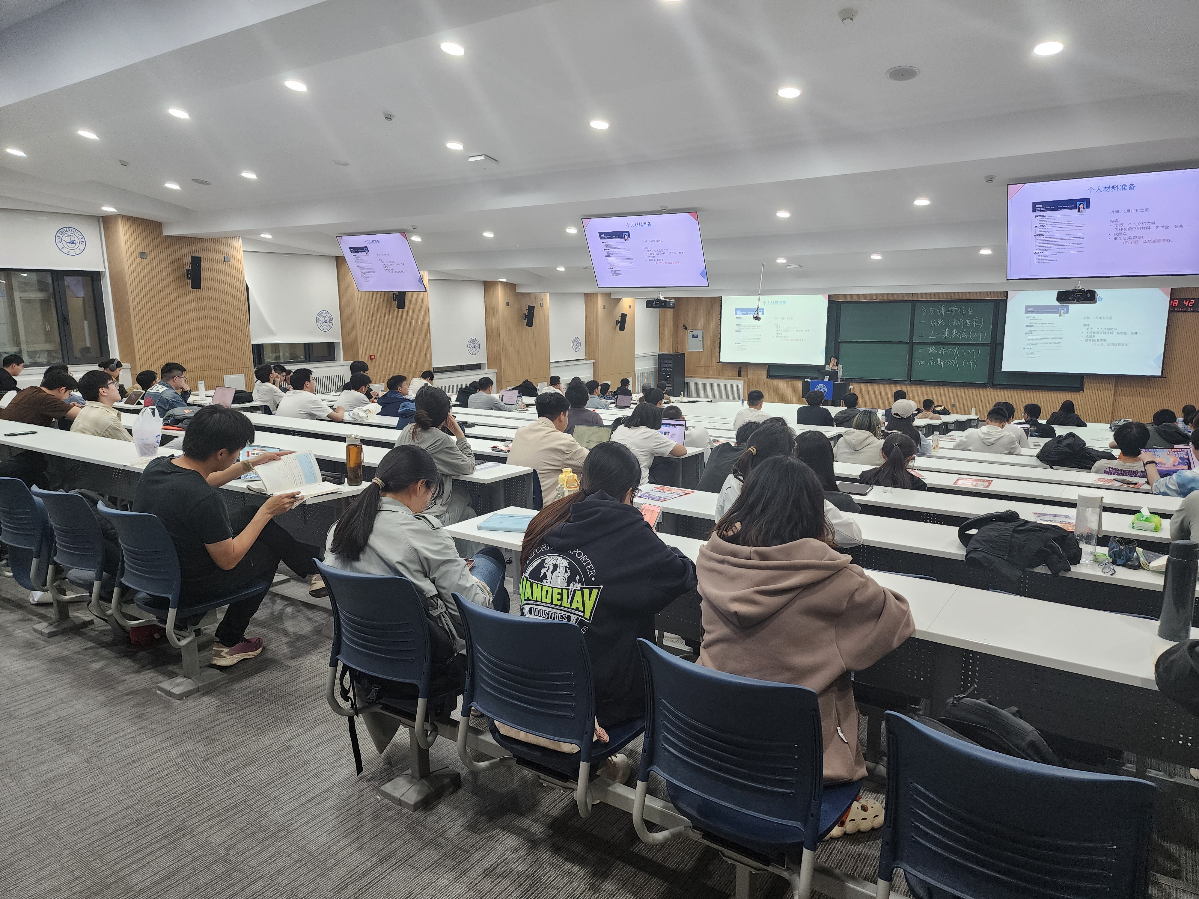 讲座伊始,主讲人首先向在场同学简要介绍自己的基本情况,包括本科前五、六个学期的学业成绩及排名、科研经历与竞赛获奖情况。针对科研经历不足的普遍性问题,主讲人鼓励同学们摆脱焦虑,全面认识自己的优势与不足,争取做到补短板与锻长板“齐头并进”,有针对性地提高自己的核心竞争力。