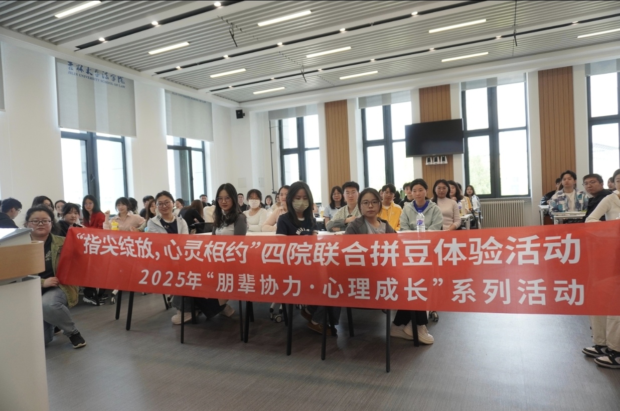 联合法学院、生命科学学院、文学院于5月18日在法学楼B405教室举办“指尖绽放,心灵相约”拼豆DIY心理体验活动。活动以手工艺术为载体,引导80余名同学在沉浸式创作中释放压力、疗愈心灵,通过朋辈协作实现心理成长与情感共鸣。