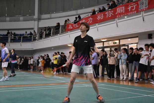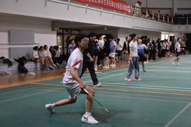 男单赛场同样精彩激烈。6名参赛选手奋勇拼搏,展现出顽强斗志与过硬实力。在八强晋级战中,选手张天翔在决胜局18:20落后的关键时刻沉着冷静,连续两次变线吊球追平比分,并以22:20完成逆转,助力男单队挺进八强。最终,男单团体以积分位列第五,展现了软件学子奋发进取的竞技风采。