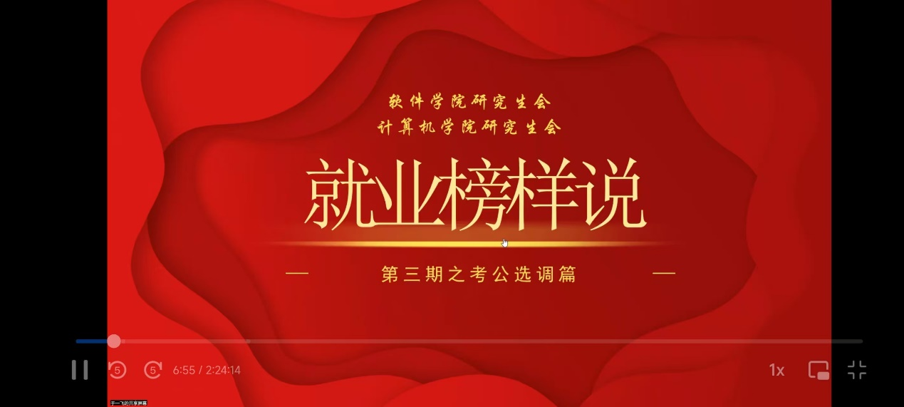 研究生会联合计算机科学与技术学院研究生会举办“就业榜样说——选调考公篇”就业经验分享会。本次活动邀请四位优秀毕业生代表作为分享嘉宾,围绕同学关注的问题逐一分享讲解。