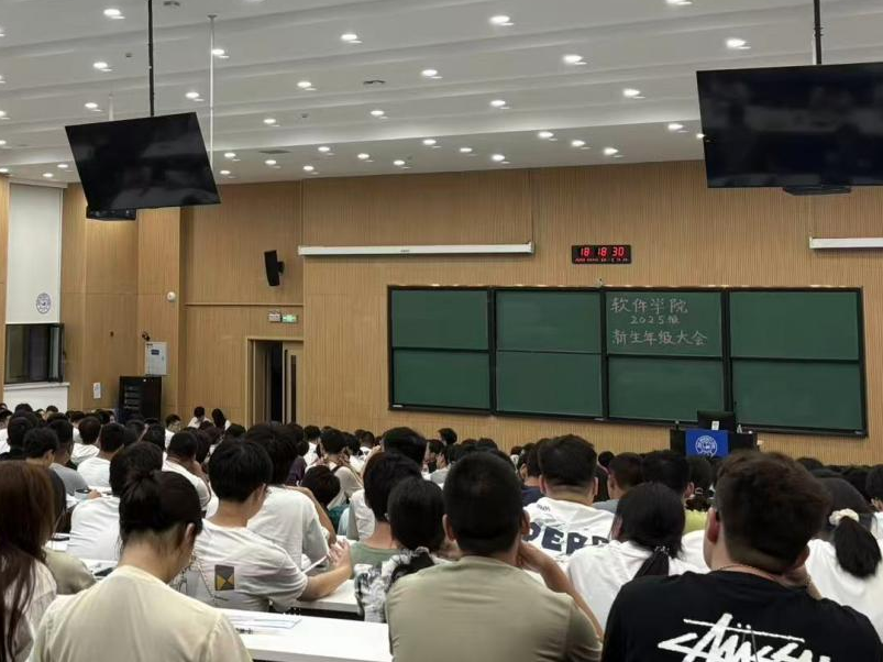 为帮助新生更好的熟悉校园环境、适应大学节奏,顺利完成角色转换,8月24日,软件学院于敬信教学楼第一阶梯教室召开2025级本科新生第一次年级大会,辅导员戴嘉宜担任主讲人,围绕大学生涯规划、专业特点、大中衔接、行为规范、生活安全等核心内容,为新生们带来一场兼具指导性与实用性的入学教育。