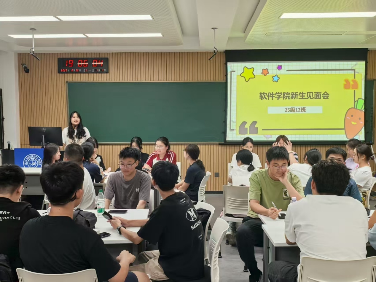 在新生介绍环节,现场氛围热烈活跃。同学们紧扣个人特色积极发言:有的结合家乡地域文化讲述成长故事;有的分享编程启蒙经历、软件开发兴趣;还有的畅谈对未来专业深耕方向及职业生涯的规划设想。各具特色的分享不仅让彼此快速熟悉,更充分展现新生们多元的个性风采与昂扬向上的青春朝气。