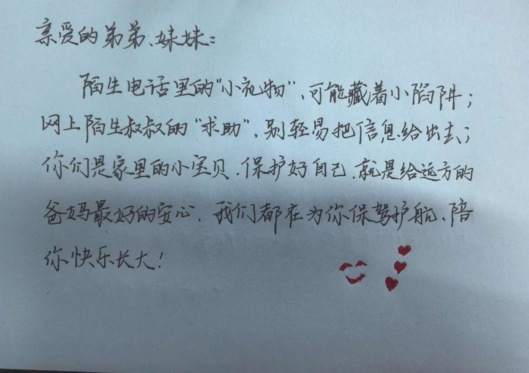 携手“锦益童行”项目组,成功举办“反诈护童心,温暖伴成长”主题校园公益活动。活动通过线上线下联动,将反诈知识普及与公益捐赠相结合,以创意实践传递安全理念与爱心关怀,守护留守儿童们的纯净天空。