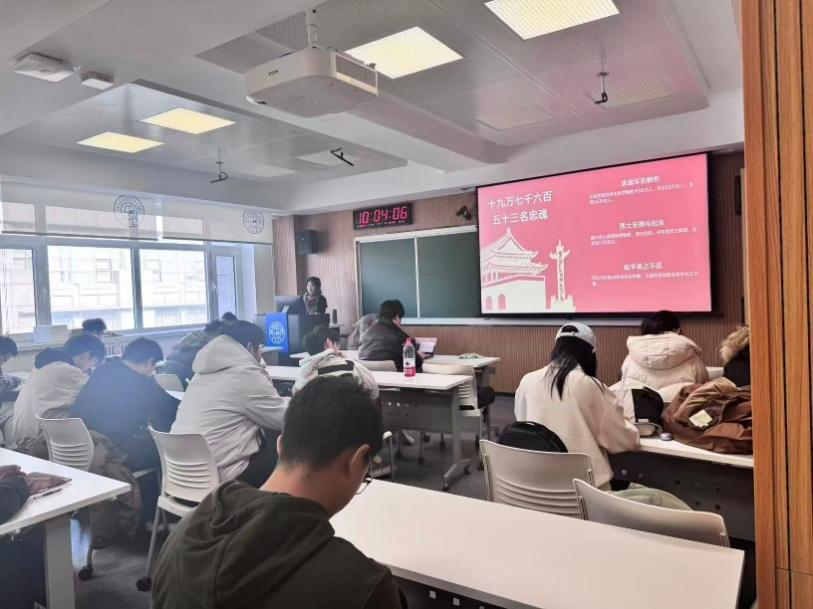 团课期间,团支书们首先带领大家系统回顾了抗美援朝战争的时代背景与战略决策,讲解了朝鲜战场的战局变化、新中国面临的安全危机,以及党中央作出“抗美援朝,保家卫国”战略决断的历史必然性。系统的理论学习,让同学们对这场“立国之战”的必要性与正义性有了更全面深刻的认知。随后,学习重点转向艰苦卓绝的战斗历程。团支书们通过讲解两水洞、长津湖、上甘岭等关键战役的战斗细节,让同学们真切感受到了志愿军将士不畏强敌、舍生忘死的伟大精神。