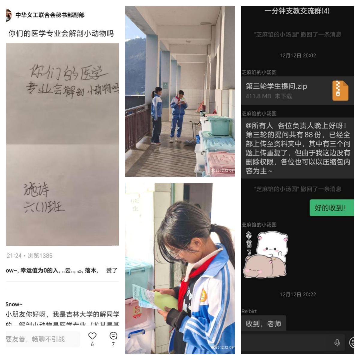 据统计,本次活动累计参与人次达236人,成功为支教地学生解答各类问题400余个,涵盖学科知识、生活常识、成长困惑等多个领域,有效满足了偏远地区学生的求知需求。