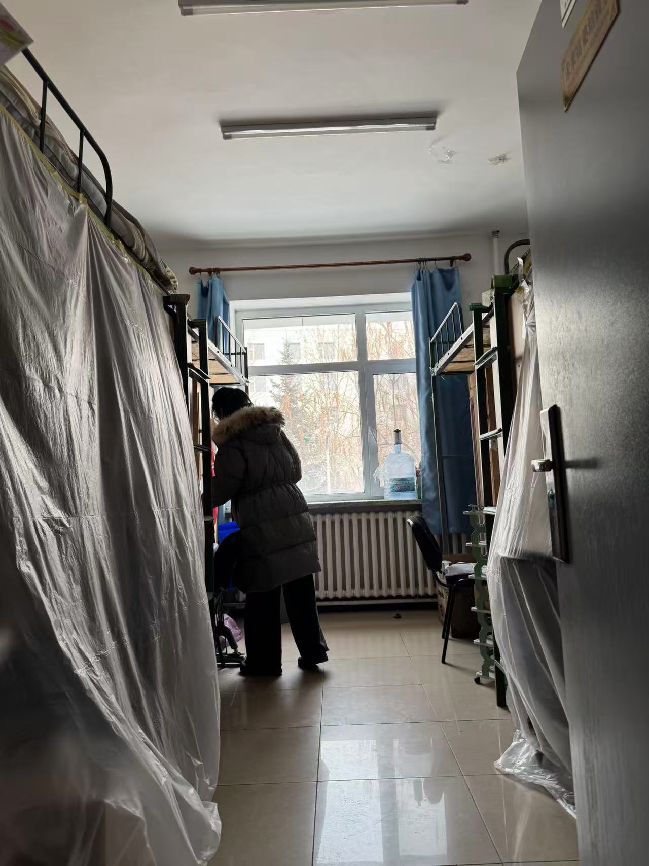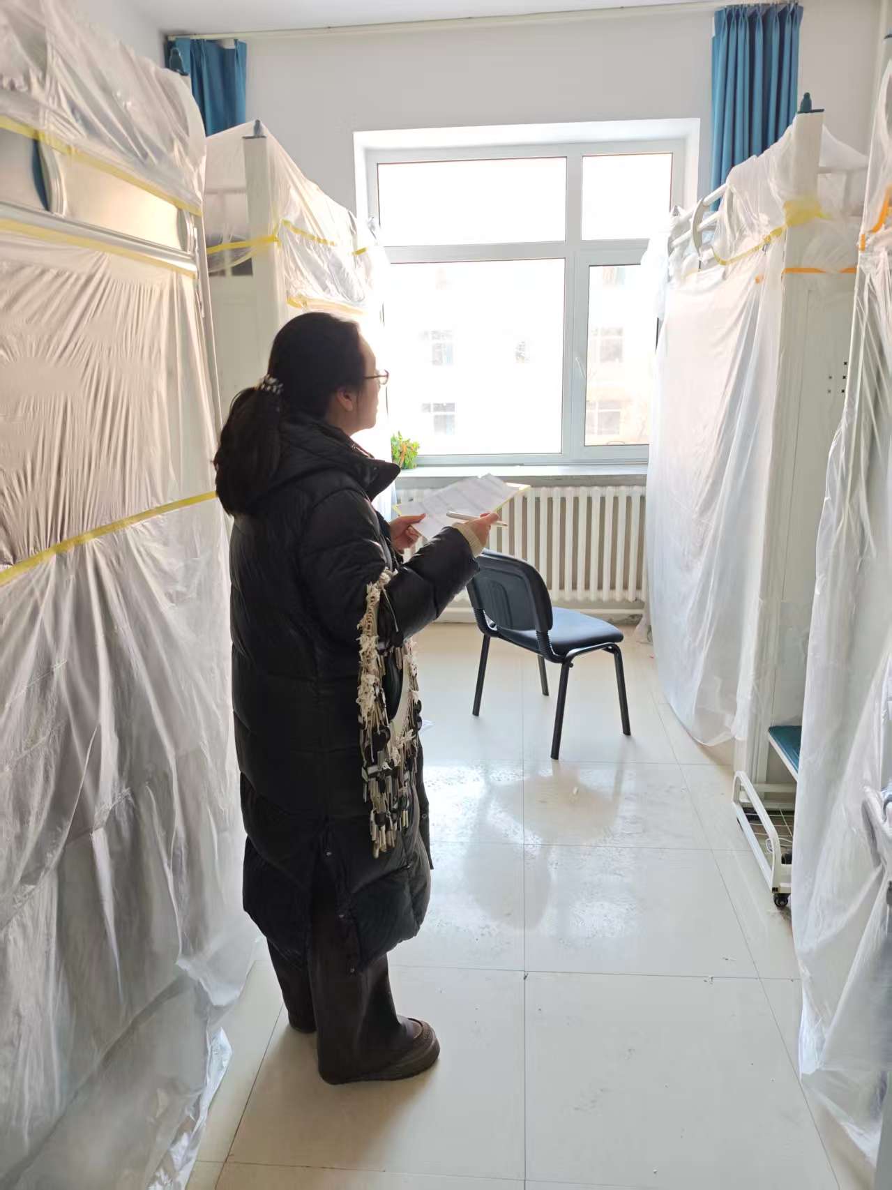 本次走访检查围绕工程施工准备与假期安全保障两方面展开。针对空调安装电气系统改造的要求,重点检查了学生个人物品整理情况:督促学生们将零散物品收纳至储物柜并上锁,贵重物品随身携带或妥善保管;逐一核查床帘等寝具是否拆除,床铺及周边空间是否清空,窗台物品是否收回,确保施工区域畅通无阻。针对北苑一公寓重点围绕宿舍用电安全、防火防盗、卫生环境等方面展开,对登记的留校学生进行确认。检查过程中,老师们逐一排查了违规电器使用、电源关闭、阳台杂物堆积等潜在风险,耐心叮嘱离校同学务必做到断水断电、关窗锁门,妥善保管个人贵重物品。