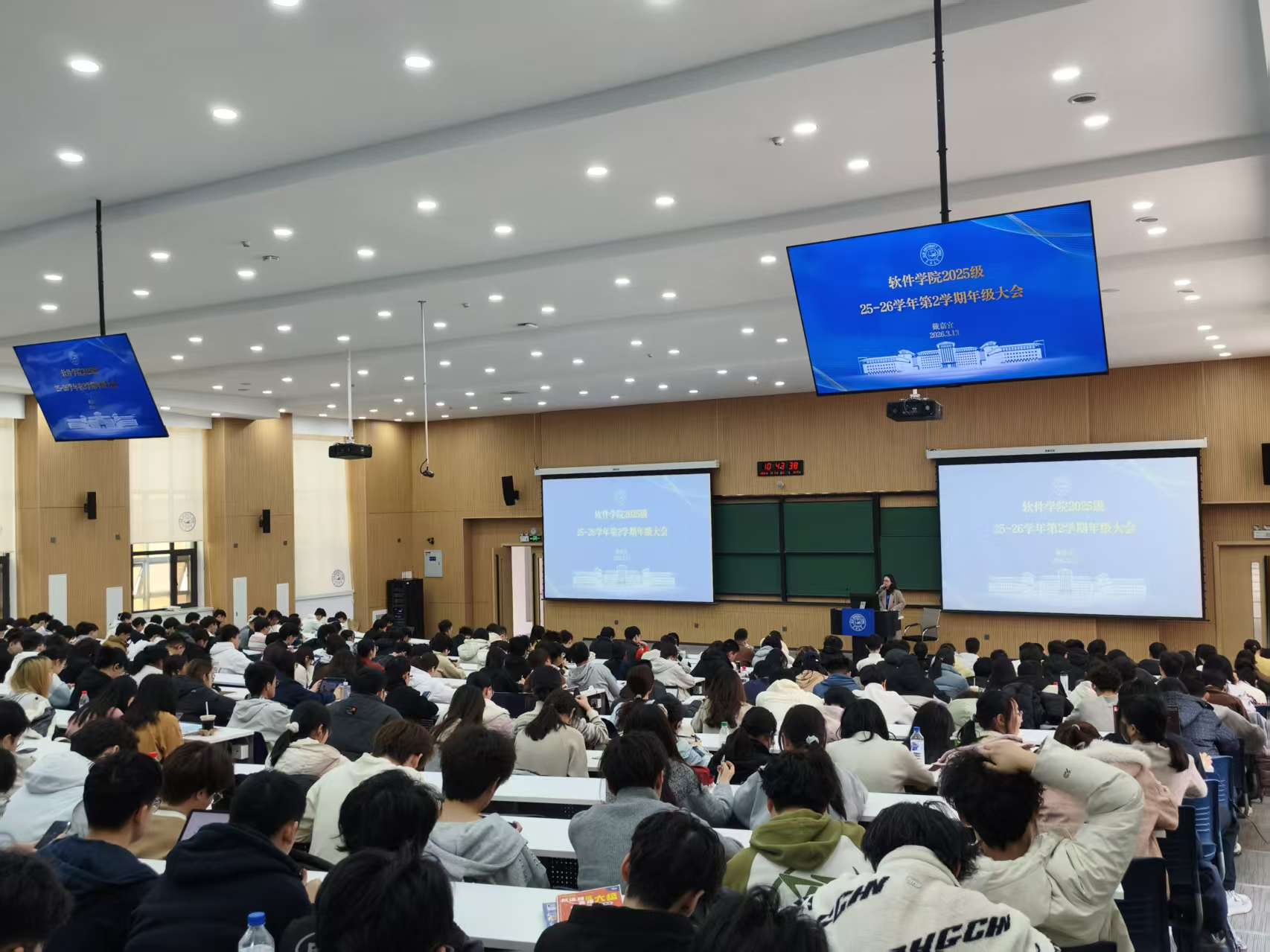 于敬信教学楼先后召开大数据专业、软件工程专业2025级本科生年级大会,辅导员戴嘉宜老师担任主讲人,全体2025级本科生参会。会议围绕学业发展、日常管理、安全防范等核心内容展开,为学生新学期学习生活筑牢基础、指明方向。