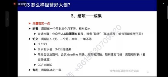 围绕成果形式与评审要求,马宝彤客观分析了不同结项成果的优劣。她强调,最终成果须与立项内容严格对应。高水平论文是获评国家级优秀项目的核心加分项,但发表周期长、难度偏高;软著与实用新型专利申请难度小、周期短,却难以在评审中形成突出优势,建议各团队结合自身实际合理规划成果产出。