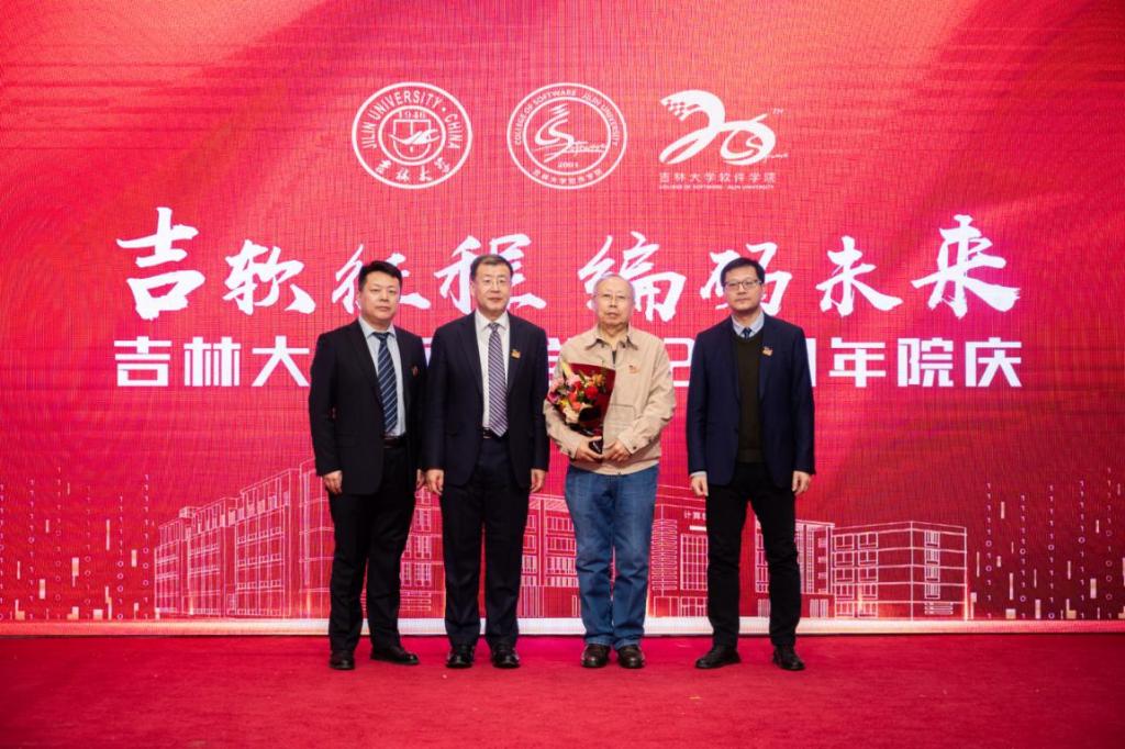 接着,薛书记向含羞草视频 的历任领导和资深教师颁发了“突出贡献奖”,向学院创始人刘大有教授颁发“特殊贡献奖”,感谢他们二十年来的辛勤付出,肯定了他们对学院作出的突出贡献。
