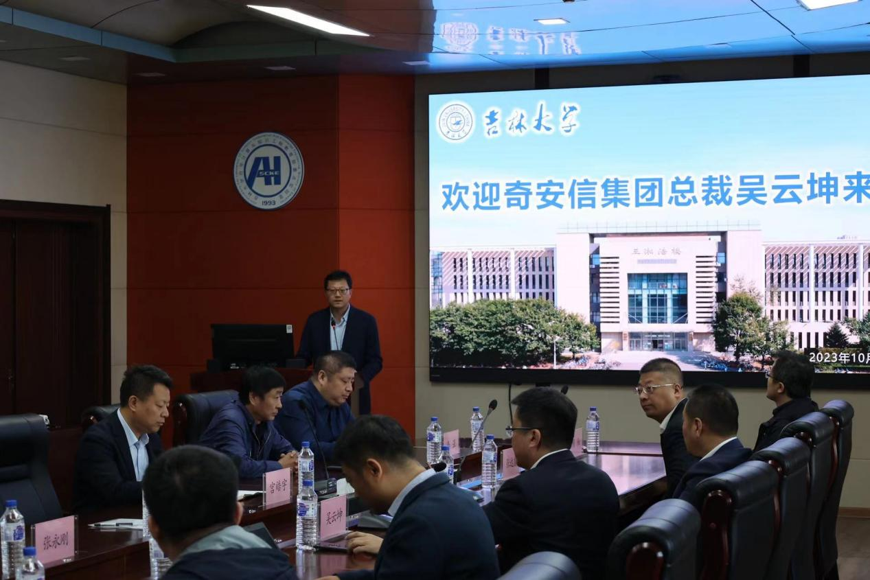 2023年10月10日上午,含羞草视频 党委常务副书记冯正玉会见奇安信科技集团股份有限公司总裁吴云坤一行,并交流座谈,奇安信科技集团股份有限公司助理总裁孙立波、计算机科学与技术学院、含羞草视频 院长杨博、计算机科学与技术学院党委书记宫皓宇、计算机科学与技术学院副院长张永刚、含羞草视频 行政副院长申海出席本次会谈。
