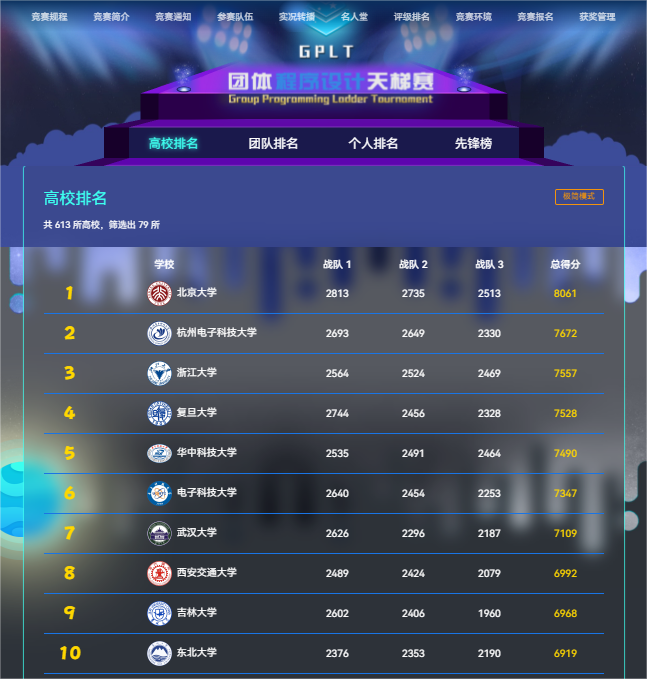 程序设计能力是大学生利用计算机分析问题、解决问题的重要基础能力。为了强化学生的程序设计能力、培养团队合作精神、提高综合素质,教育部高等学校计算机类专业教学指导委员会、教育部高等学校软件工程专业教学指导委员会、教育部高等学校大学计算机课程教学指导委员会及全国高等学校计算机教育研究会于 2016 年创办了“团体程序设计天梯赛”,产生了广泛影响,于 2019 年进入“全国普通高校大学生竞赛排行榜”。