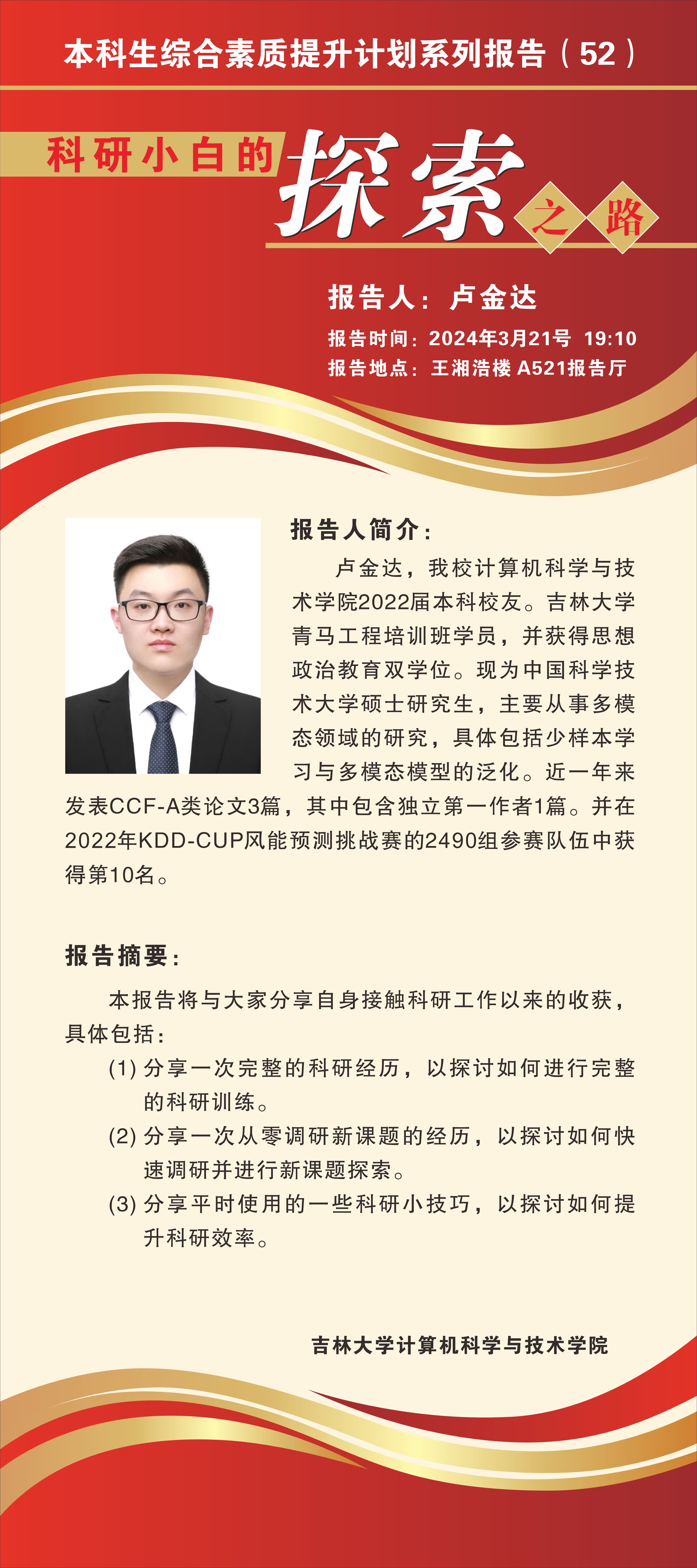 报告人简介:卢金达,我校计算机科学与技术学院2022届本科校友。含羞草视频
